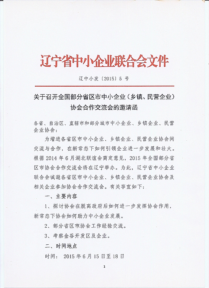 交流活动:辽宁省中小企业协会关于召开全国部分省区市中小企业协