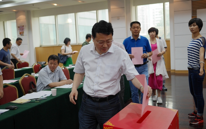 会议的第三项议程是选举事项。首先由协会秘书处服务部部长李运功宣读了协会秘书处起草的《湖北省中小企业协会关于理事会人员调整的说明》,这份《说明》介绍了理事会人员本次调整的原因、依据,以及根据协会第二届第四次常务理事会的决定拟定的会长候选人、增补副会长候选人、免职副会长、免职常务理事名单和协会秘书长产生办法。本次调整,需投票选举4人(会长1名,副会长3名),免职副会长8人,免职常务理事5人,聘任秘书长1名。《说明》宣读之后,会议进入选举程序。会议决定由协会监事会主任林望芝、监事万国恩二同志担任监票人;罗艾平、李运功、张萌、付钧天同志担任计票人。与会代表认真填写选票,然后在工作人员的引导下,秩序井然顺序排队投票到两个票箱。投票结束之后,在检票人的监督下,计票人在现场进行了统计,最后由监票人林望芝宣布了选举结果。谭少群同志当选为会长;甘子林、李树锋、陈俊名三同志当选为副会长。