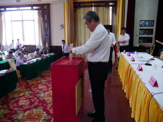 2013年4月18日,湖北省中小企业协会第二届会员代表大会在武汉中南花园酒店召开,来自全省各地的中小企业代表、各市州经信委副主任、中小企业科科长共计300多人参加了会议,图为代表正在投票。