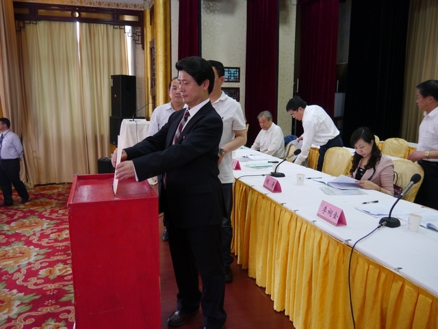 2013年4月18日,湖北省中小企业协会第二届会员代表大会在武汉中南花园酒店召开,来自全省各地的中小企业代表、各市州经信委副主任、中小企业科科长共计300多人参加了会议,图为代表正在投票。