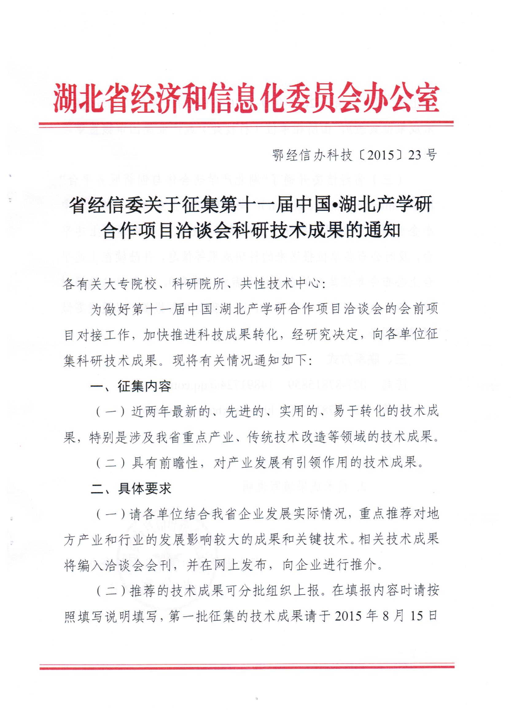 关于征集第十一届中国湖北产学研合作项目洽谈会科研技术成果的通