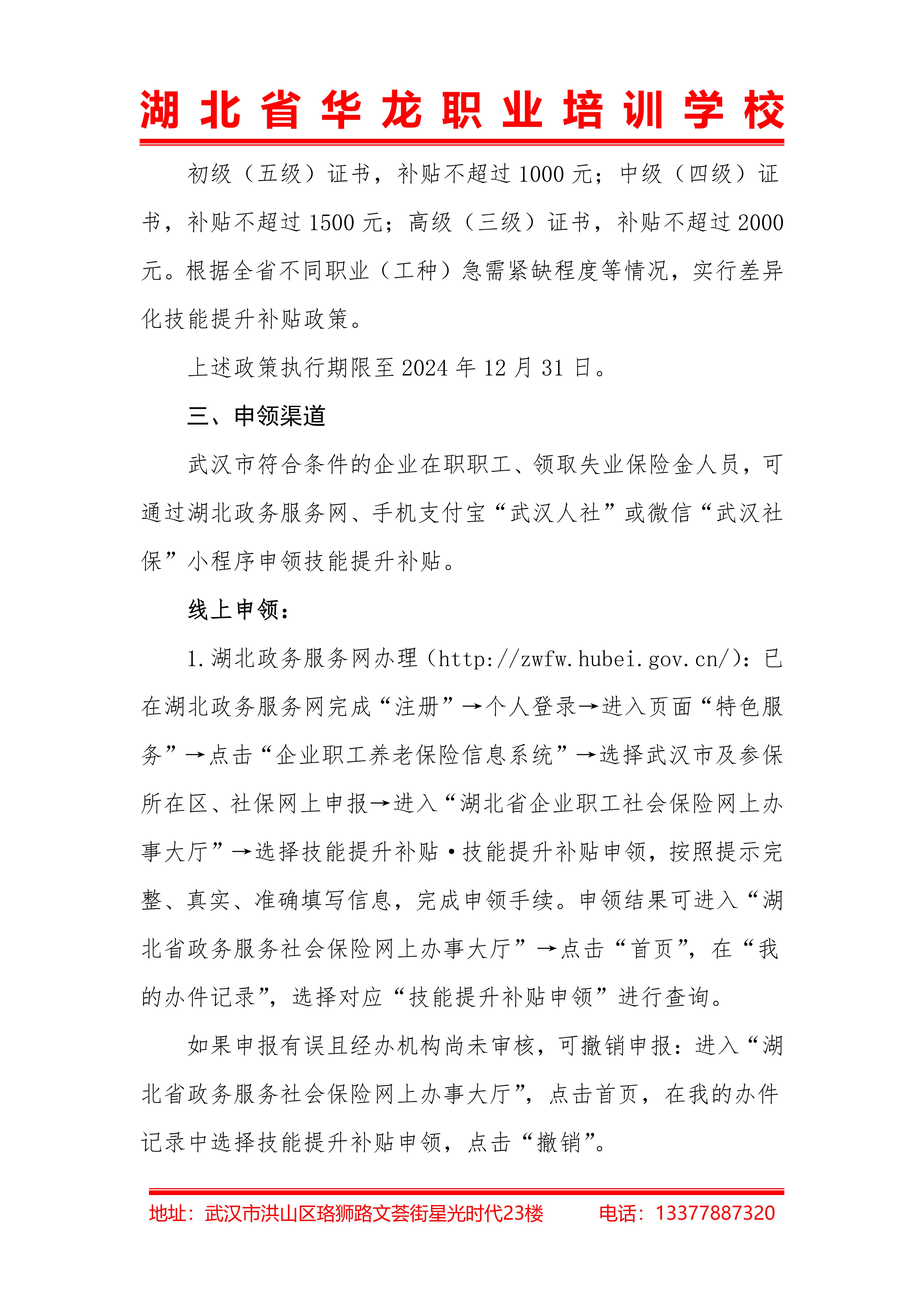 湖 北 省 华 龙 职 业 培 训 学 校