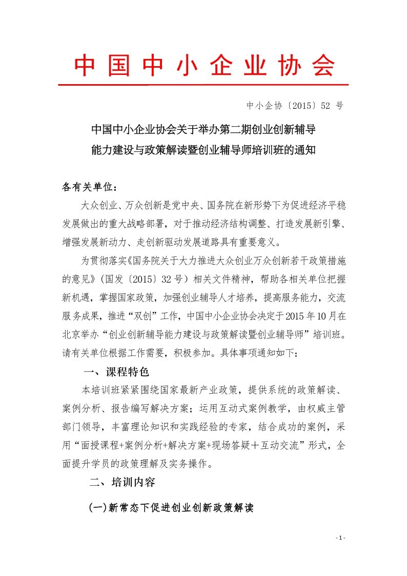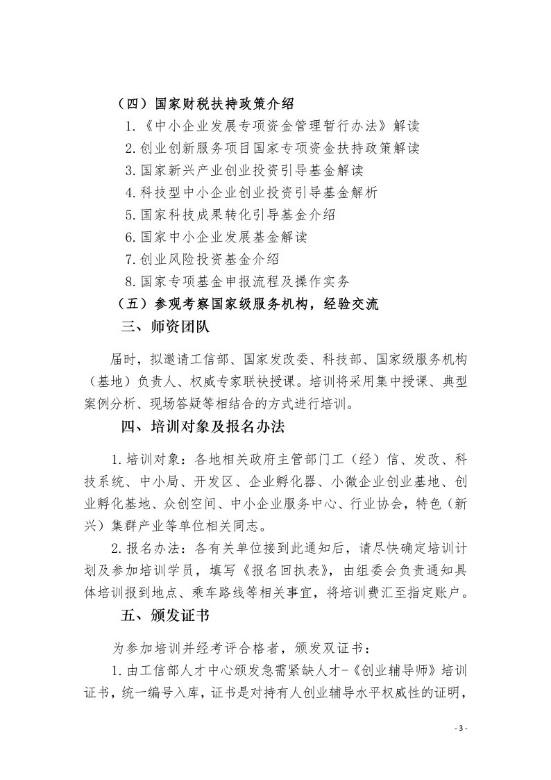 转发:中国中小企业协会关于举办创业辅导师培训班的通知