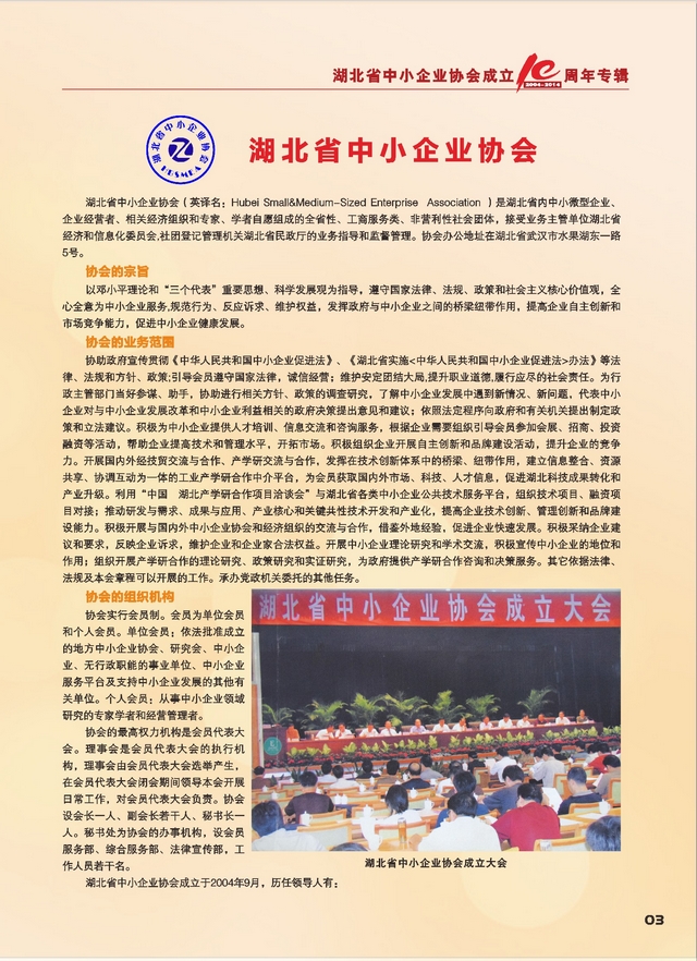 2014年9月19日,湖北省中小企业协会十周岁了。