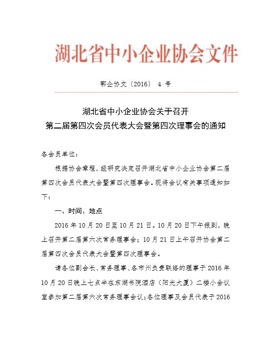 关于召开第二届第四次会员代表大会暨第四次理事会的通知