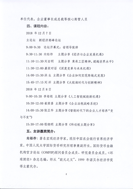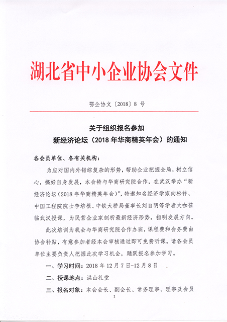 关于组织会员参加新经济论坛的通知(洪山礼堂,2018-12-7)