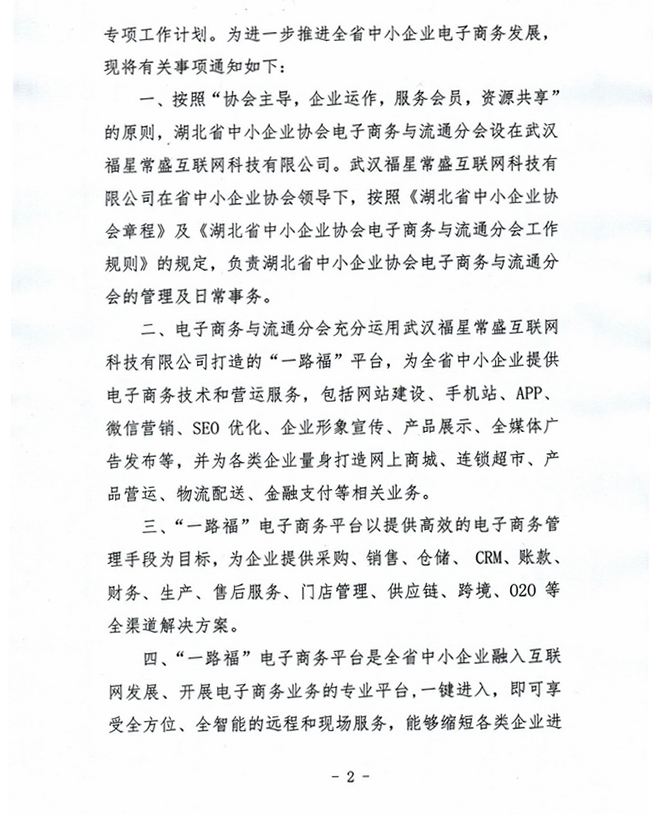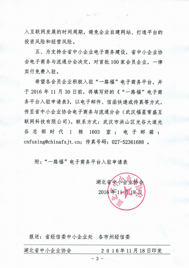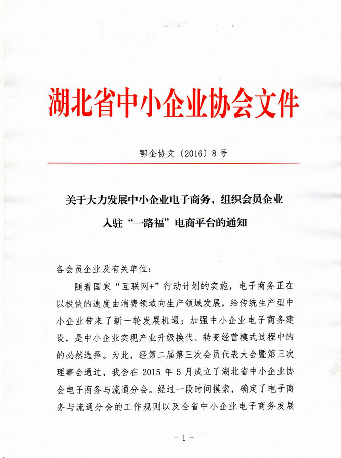 关于大力发展中小企业电子商务,组织会员企业加入“一路福”电商