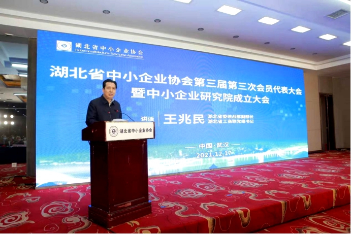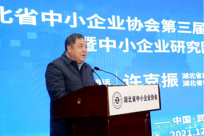 12月17日,湖北省中小企业协会第三届第三次会员代表大会暨湖北省楚星中小企业发展研究院成立大会、2021湖北中小企业高质量发展论坛在武汉成功举办。原湖北省副省长、省中小企业协会首任会长许克振,湖北省委统战部副部长、湖北省工商联党组书记王兆民,湖北省经济和信息化厅党组成员、副厅长江斌等领导出席会议并发表讲话。各地市经信厅领导及协会会员代表400余人参会。