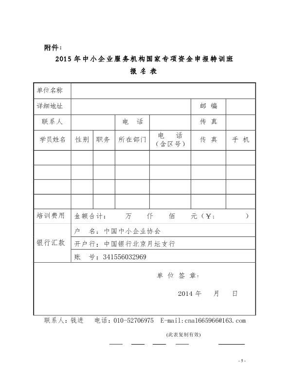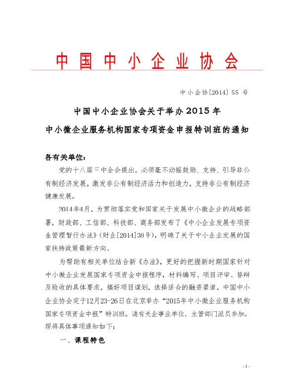 中国中小企业协会关于举办2015年中小微企业服务机构国家专项资金